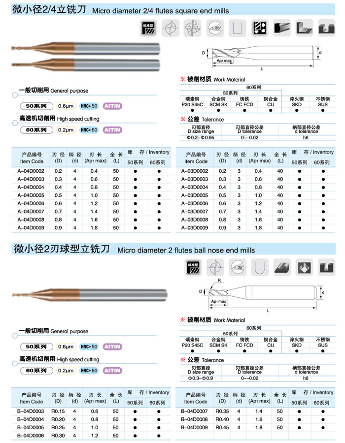 微小徑2/4立銑刀