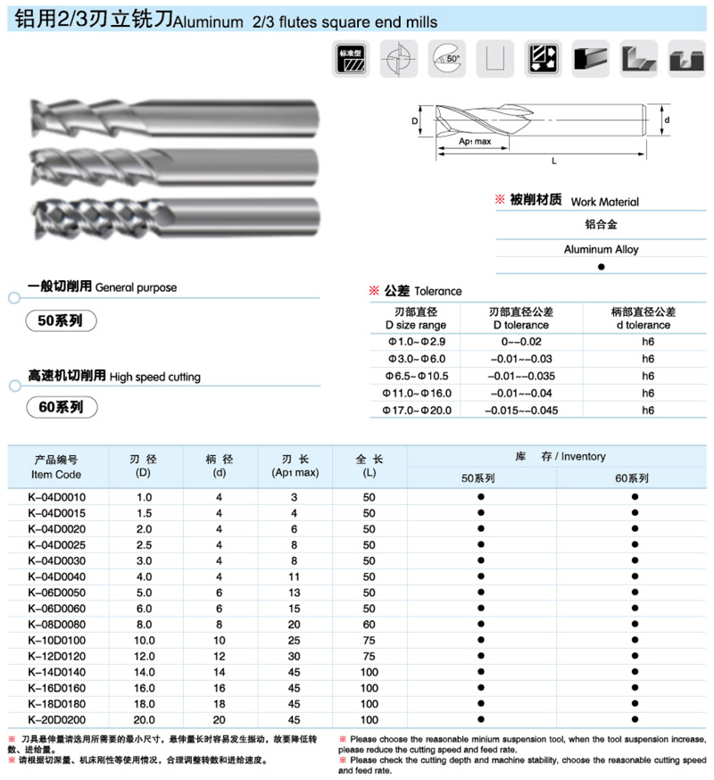 鋁用2/3刃立銑刀